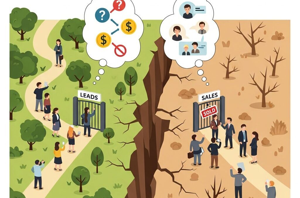 オウンドメディア経由のリード数は順調に増えているのに、営業に引き渡しても商談につながらない。この現象は一時的な不調ではなく、**構造的に起こる必然**であるケースが大半です。背景には、BtoBマーケティング特有の分業構造と、成果指標のズレが存在します。