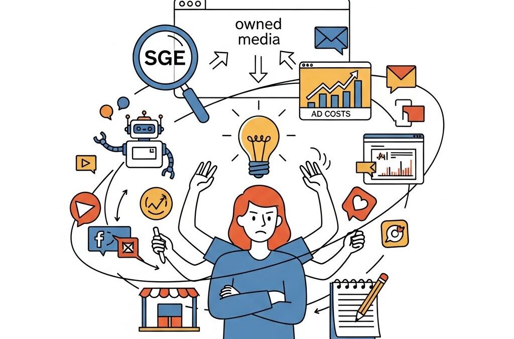 特に展示会、広告、SNS、営業連携まで担う兼務マーケターにとって、オウンドメディア運営は理想論では続かないのが現実です。それでも2025年現在、検索体験のAI化や広告費の高騰を背景に、オウンドメディアは企業の基幹インフラとして無視できない存在になっています。