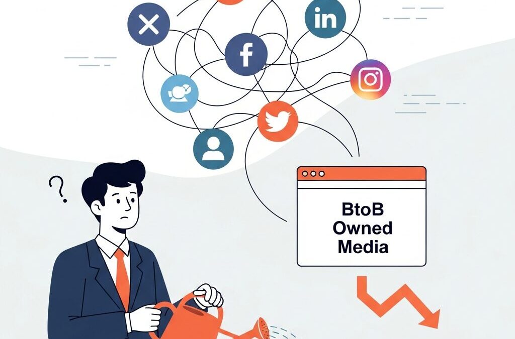 本記事では、BtoBオウンドメディアとSNS流入停滞の背景を構造的に整理し、2025年を見据えた現実的な再生戦略を解説します。
